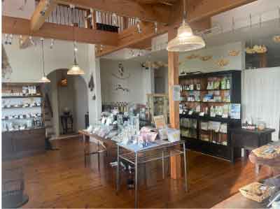 愛知県犬山市郊外にあるカフェのような建物が敏感肌専門 緑風(リーフ)です。1994年に可児市で創業して、2011年に自社店舗を新築 ショップ内1階 肌が弱い人・ニキビ、赤くなる、乾燥肌が安心して使える無添加商品を販売しています。